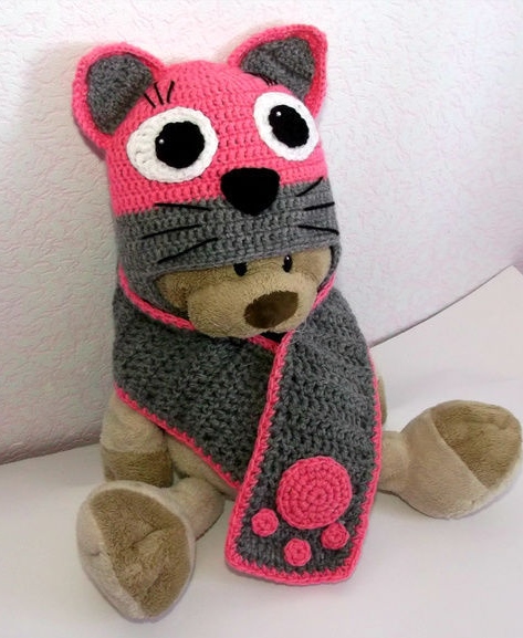 For very young women of fashion, inventive masters create "beastly kits" that are gaining increasing popularity.: tiger cub, bear, bunny, doggy, raccoon, cat, owl and a whole zoo of hats and scarves, knitted embodiment of a beloved animal.