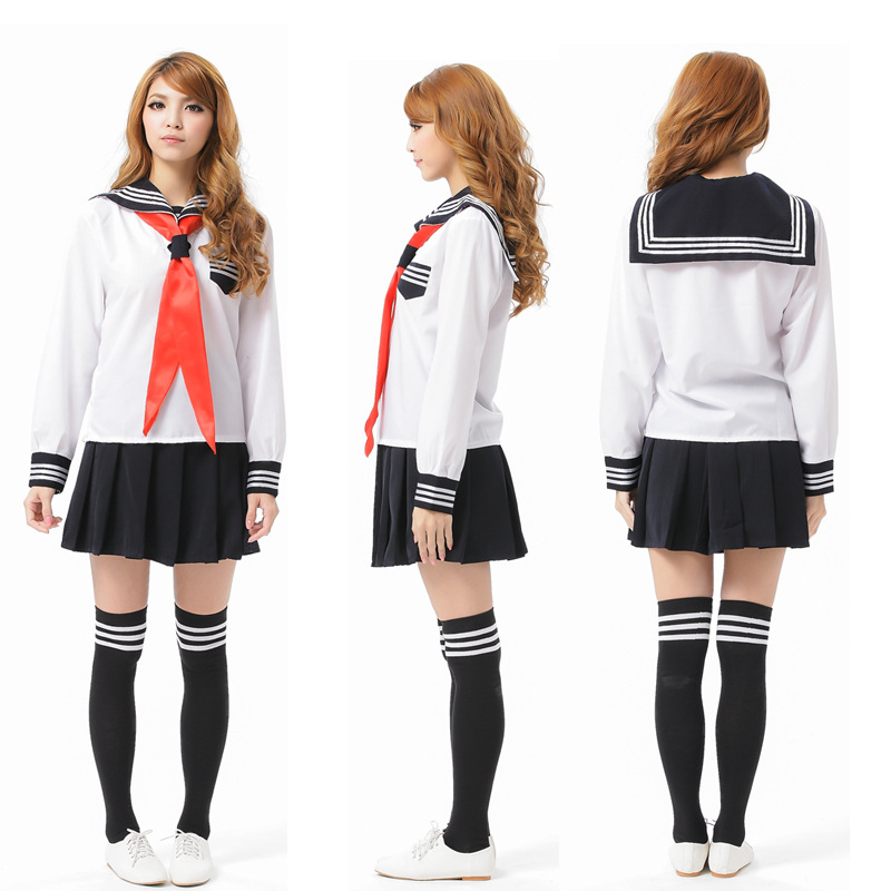 If in a classic image they add a commonplace, then the style of anime will be simply amazing. A short skirt, a top in a nautical style and stylish knee-highs will get a completely new look at the shape.