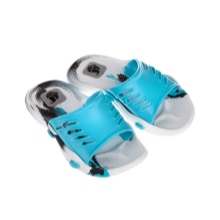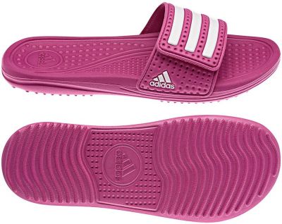 - Of great importance is the visual design, and Adidas sports slippers meet this requirement. The design of the models is pleasing to the eye and attracts the kids with bright prints. The creators of the slap avoid banal decorative techniques, so that each pair of shoes looks original. Products for girls create a sophisticated image that will suit every little princess.