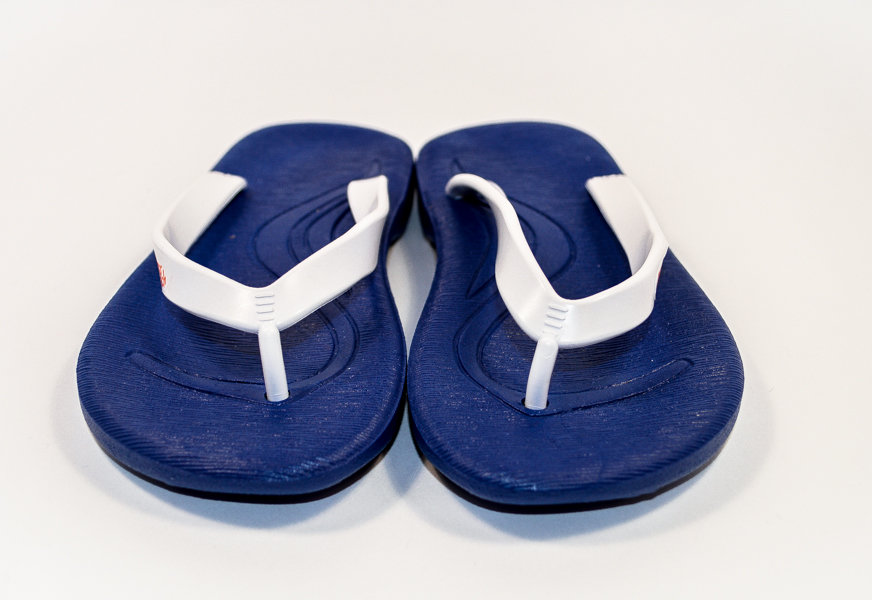 - Designers of the company know that the wrong shoes can lead to abnormal development of the foot. To avoid all sorts of problems, they connected professional orthopedists to the production process, which helped to design slippers with regard to each anatomical feature. Adidas orthopedic slaps help prevent flatfoot and ankle damage.