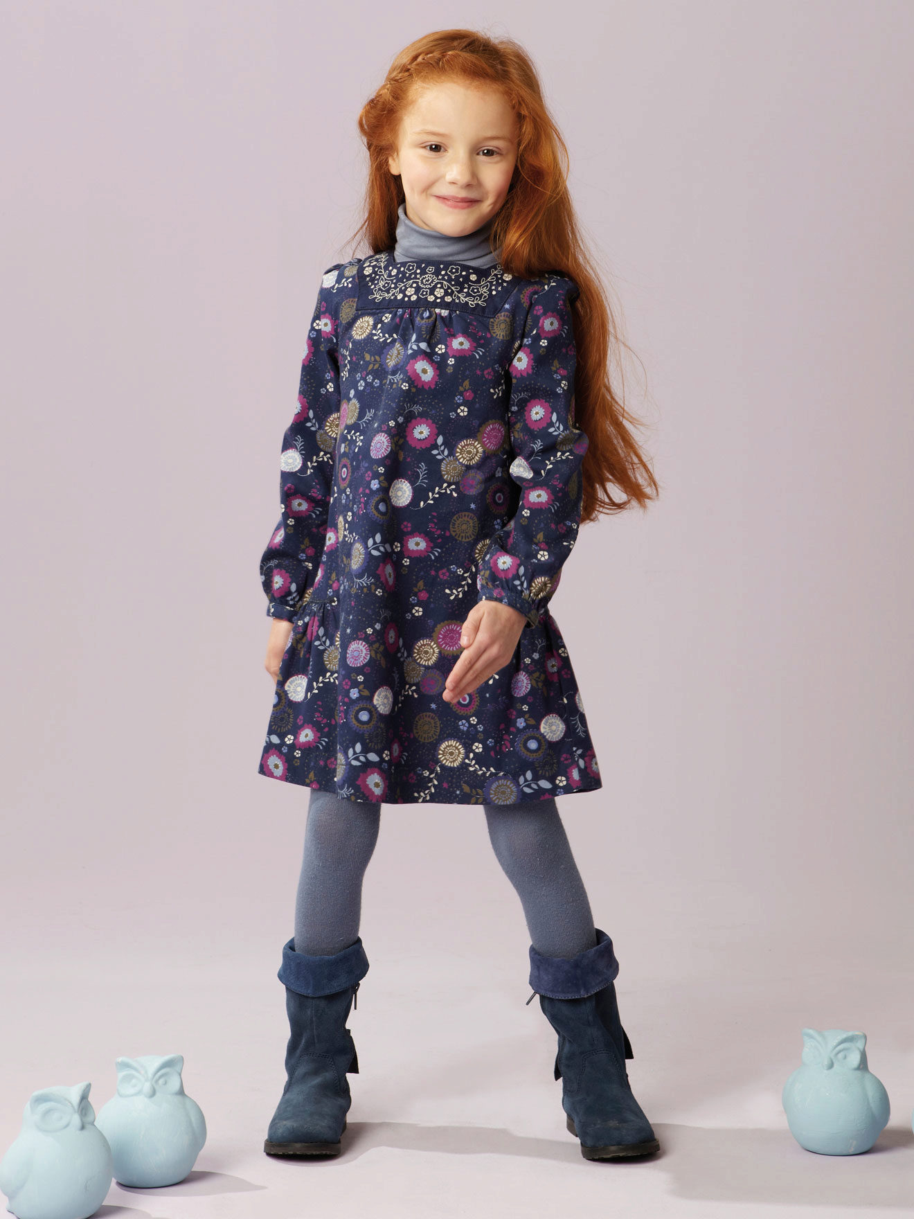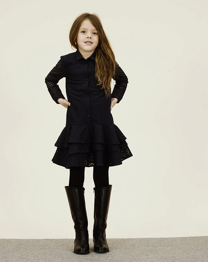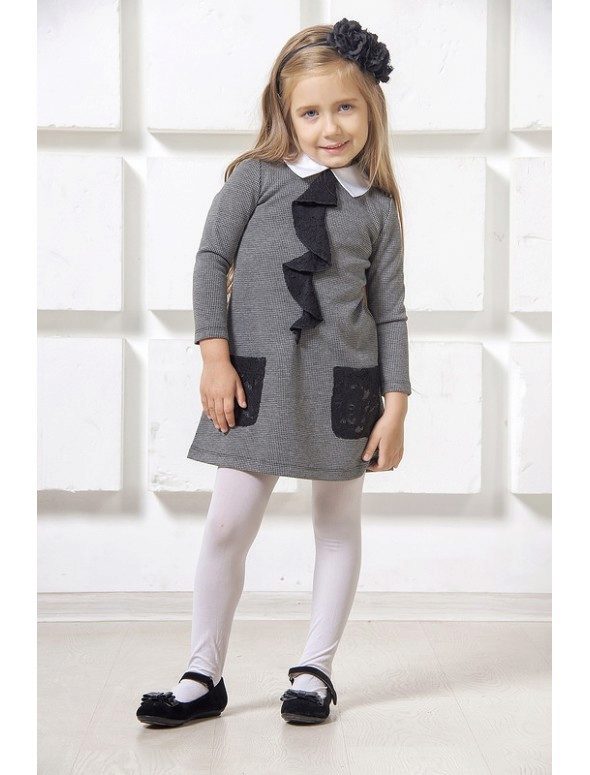 Usually these dresses are free cut, which is ideal for little girls who are constantly in motion. It can be worn with tights and leggings, jeans, trousers.