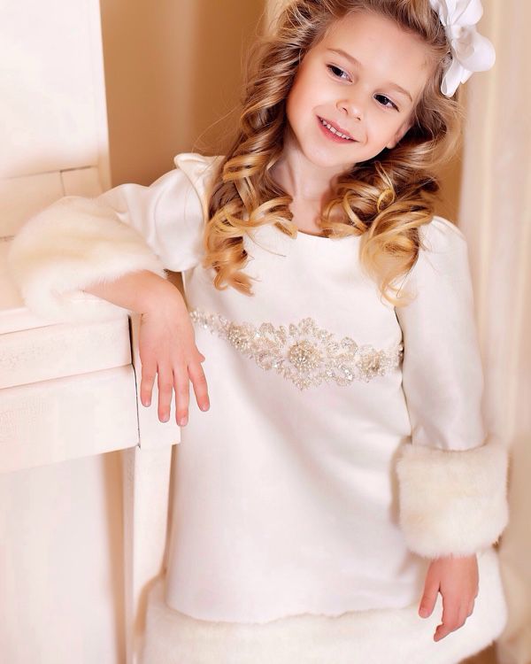 Fur collar can be matched to the dress or be contrasted. Usually it is decorated with long satin ribbons that are tied in front in a flirty bow. This accessory is very popular in adult wardrobe, so girls who want to be like their mother will definitely like the dress with fur.