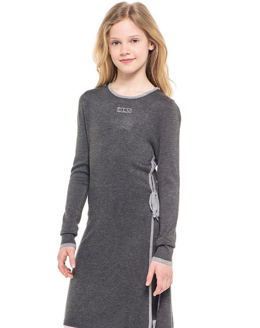 Knitwear is a versatile material that is ideal for winter. The girls look great dresses with a straight or slightly widening to the bottom of the skirt.Also popular are the classic slim styles and models with a high waist.
