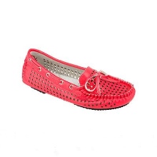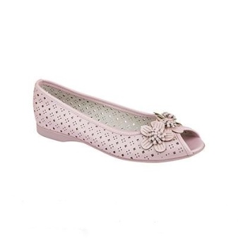 In the fashion shoes with openwork leather stripes and perforations. Beautiful volumetric flower in front of the boats gives airiness.