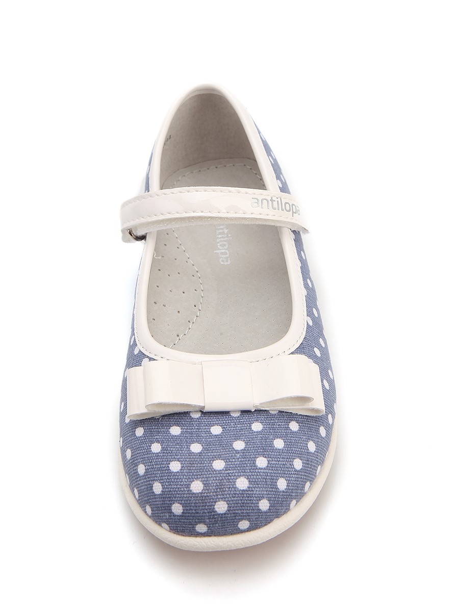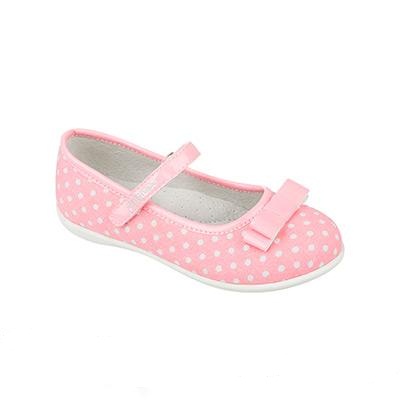 Charming polka-dot shoes will not leave indifferent any girl. Models are decorated with bows, have a stable non-slip sole and a buckle with the brand logo.