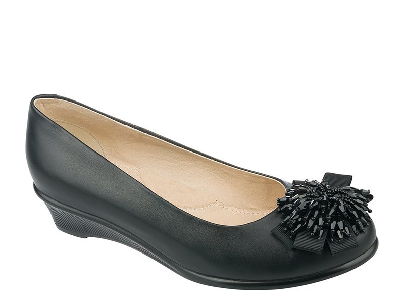 Black shoes are not wedges with a flower of ribbon and beads are very popular among schoolgirls of different ages.