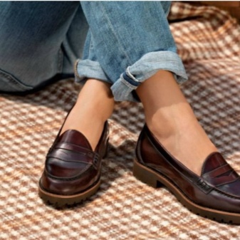 The model is a classic shoe, endowed with a neat low heel. It can be either rounded or square. Often, designers decorate loafers with various decorative elements, such as metal inserts in the shape of flowers.