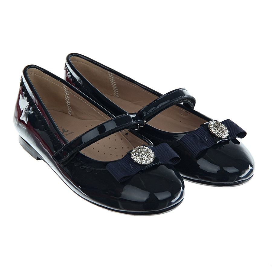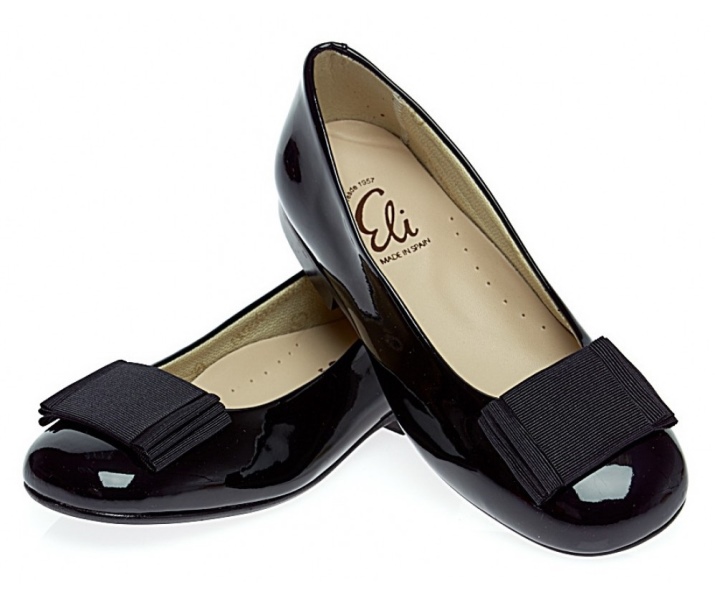 Stylish Eli shoes for little fashionistas are characterized by bright and attractive decorative accessories. Narrow or wide, as well as voluminous and flat bows on rounded toes, look very impressive and playful.