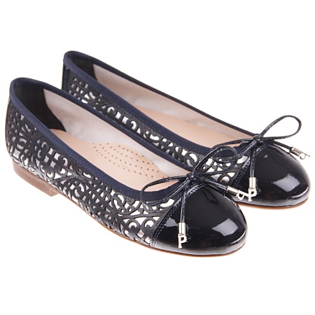 - Breathable models of shoes from matte leather with curly cutouts on the edges with a closed lacquered toe.