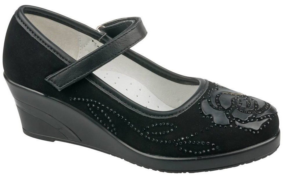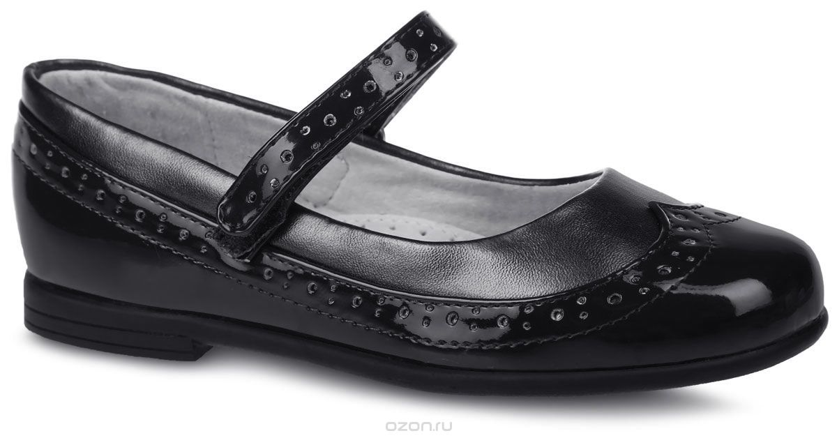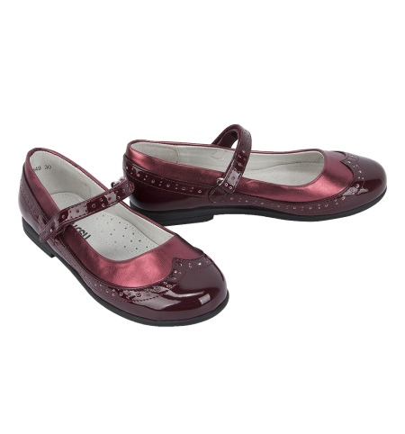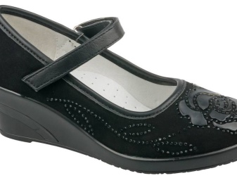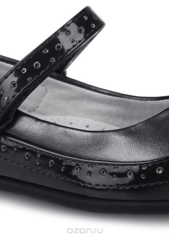 The brand produces very beautiful and comfortable classic shoes with a small heel. Such models have a thin strap on the rise. Products are made of lacquered or matte leather of classic black or dark blue color. The model range is represented by shoes with a toe decoration with bows and rhinestones. For school, it is easy to find a concise model.