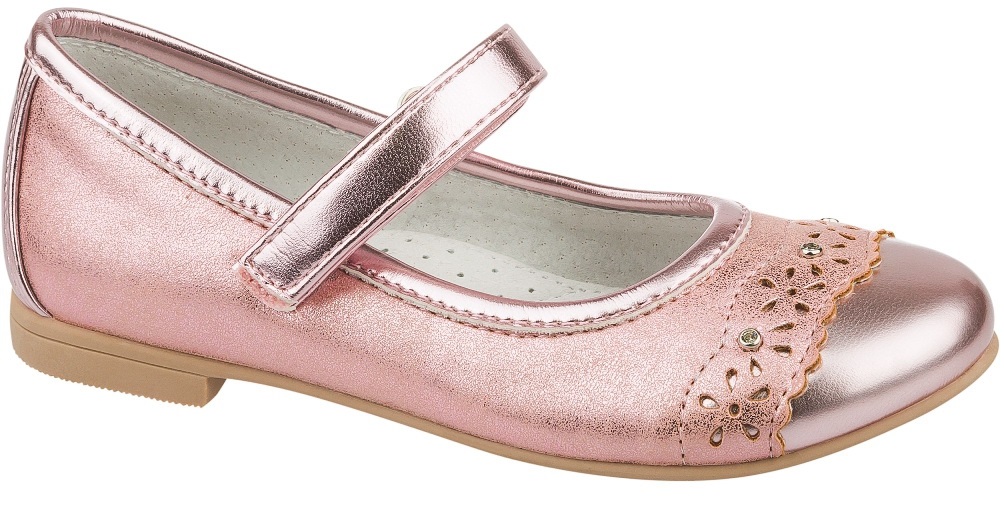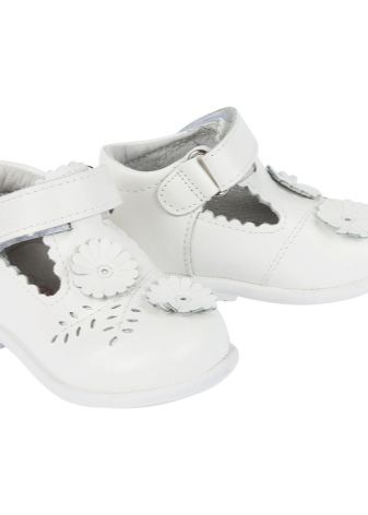 Elegant perforated shoes are perfect for long summer walks. Such models are equipped with a small wide heel and a pointed toe. In a light and very comfortable shoes with figured perforations, supplemented with rhinestones, a little fashionista will look stylish and original.