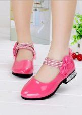 The size range of shoes on a heel is rather wide. You can find a graceful model on a neat heel, even for a very young fashionista who only makes the first steps. These shoes look charmingly on the foot size 19-20.