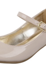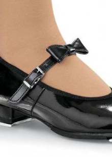 For elementary schools, shoes with a velcro strap will be ideal. They will provide the most accurate fixation, and a low wide heel will protect little ladies from fatigue. Fixation will help to avoid the possible loss of shoes while running. A small bow of leather and gold buckles is more than enough to decorate a pair.
