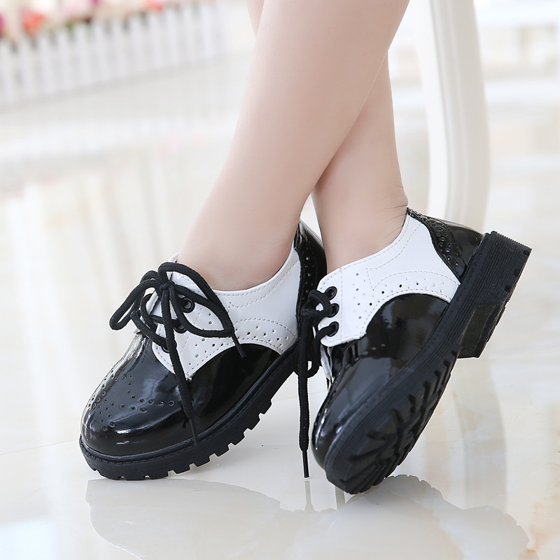 One of the most popular lines of school shoes can be called ballet flats with a small heel. They get along well with any style of form and are in harmony with skirts, sundresses and dresses. Some schools allow dress code with combination shoes. It can be elegant black polka-dot shoes, a combination of blue and black, a chocolate background with beige inserts.