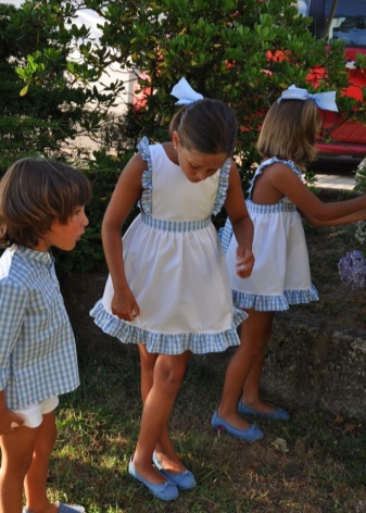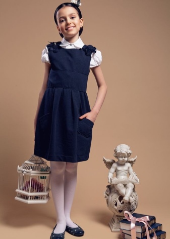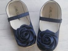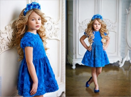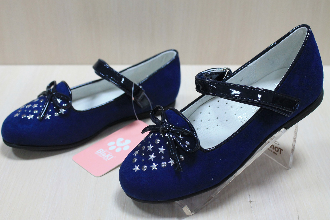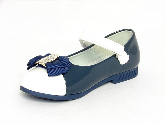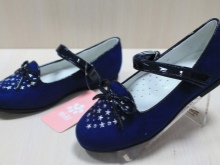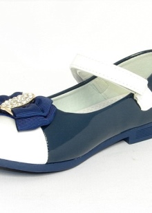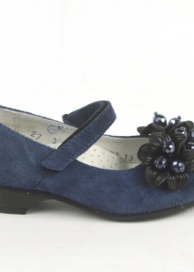 Manufacturers of children's shoes are not limited in color: black, white, pink, maroon. But we will focus on the blue tones. Shoes made in this palette, perfectly complements the regulated school uniform. Blue shoes are perfectly combined with a lush red dress.