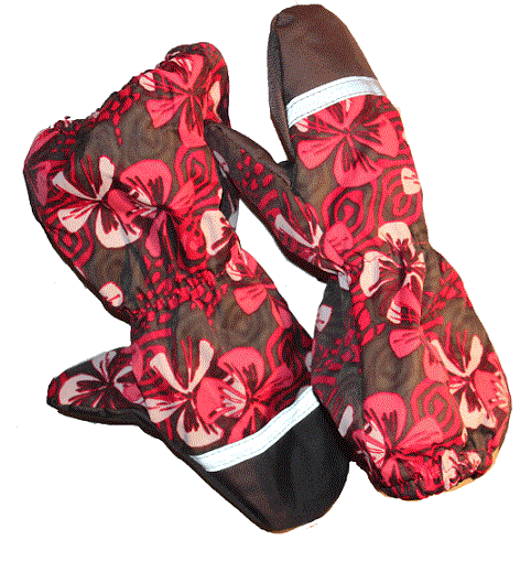 A distinctive feature is the triangular shape of the mitten.j. Fabric is characterized by gryaze- and water-repellent properties. Girls really like mittens, adorned with rhinestones or embroidered with gold thread.