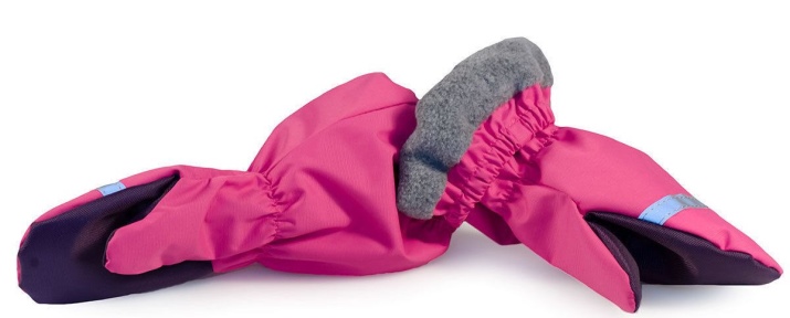 They are made of impermeable polyamide. Faux fur is used as a lining. The hands of the baby always stay warm, even in severe frosts. Due to the presence of slimming gum, located on the edge and on the wrists, the snow does not fall inside.