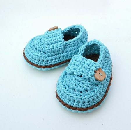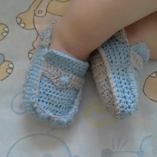 Moccasins are comfortable and practical shoes with a flat sole. When knitting, the insoles are taken as the basis, so they will serve you much longer, and they will not slip when you wear them, which is very important for children's shoe models. They can be purchased at any industrial store.
