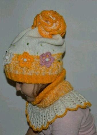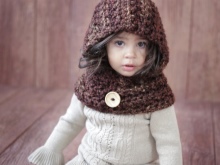 New look, rapidly gaining popularity in children's fashion, can be called a scarf-LIC. It is quite warm and comfortable. Often made of yarn, implying a large amount. Knitted elements are striking in their beauty and diversity. The size of such a model can be both minimal and large. It all depends on the age of the girl and the necessary degree of convenience. Often he makes an ensemble with a cap made of the same material.