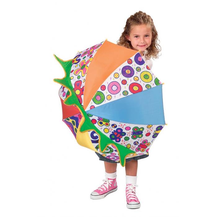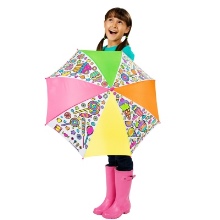 - For example, the company “Alex” offers its young customers to paint an umbrella with their own hands. The set includes a cane-semi-automatic, special waterproof markers, instructions and several stencils. Some models are already produced with printed drawings, it remains only to paint them.