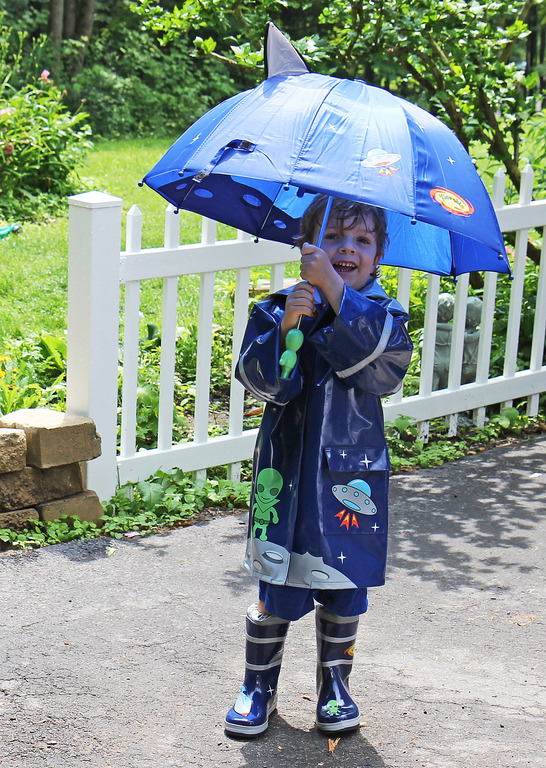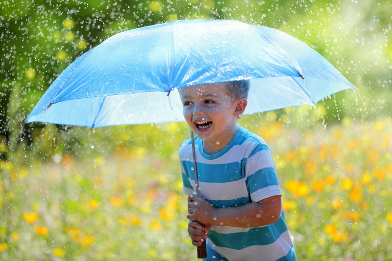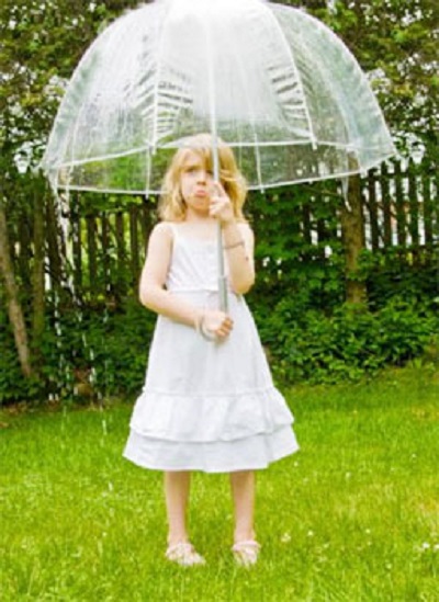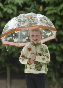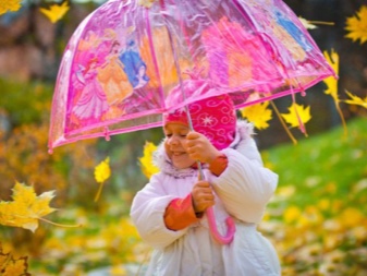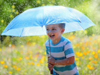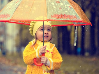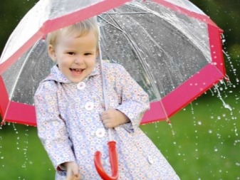 There can be several ways out of this situation. For example, pay attention to umbrellas with a bell-like dome. They may not be very convenient, as they block the view. In this case, transparent umbrellas will help. They will reliably save the child from water droplets, and will not interfere with considering what is happening.