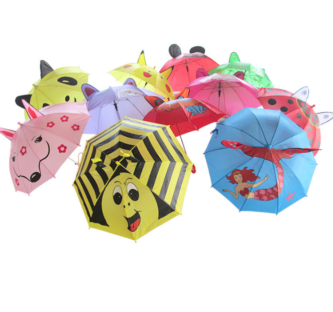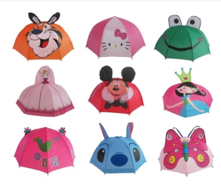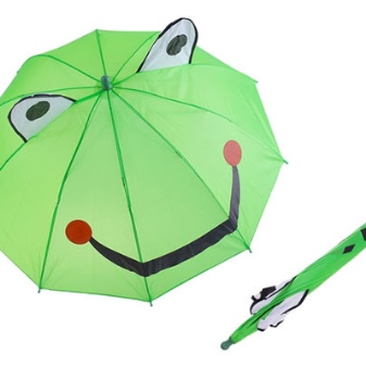 This also includes umbrellas in the form of dolls, little animals, fairy tale characters. As a rule, they are decorated with additional elements: crowns, ears, horns, bows.