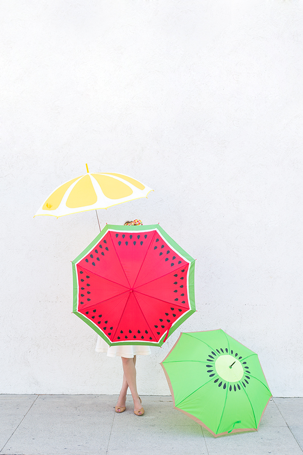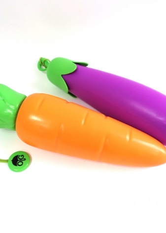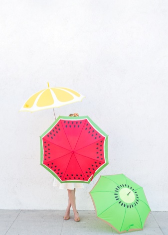 Another category of children's umbrellas - the original model. They can be made in the form of bright yellow ripe corn or orange carrot, juicy strawberries or ripe kiwi.