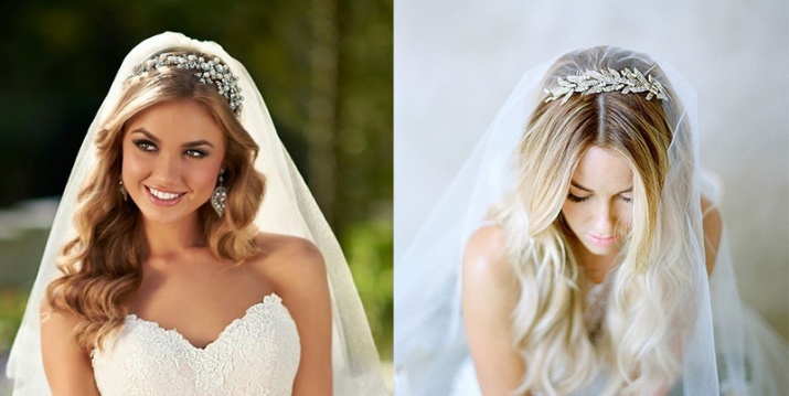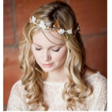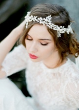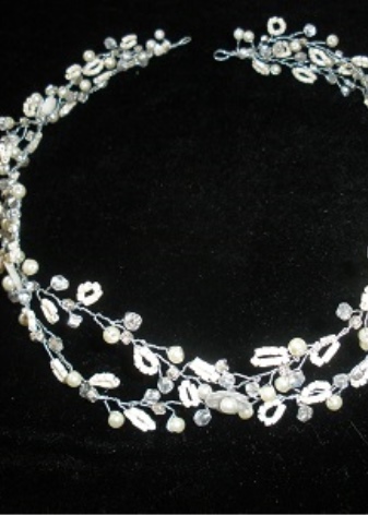 Not less popular lately are models that resemble a hoop. They can be made in the form of a full circle or semicircle. Tiara - a hoop can complement the forehead of the bride and her head. Beautifully and intensely look instances that are decorated with falling down details. In the role of the decor of such products are precious stones, pearls or lace.