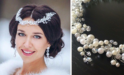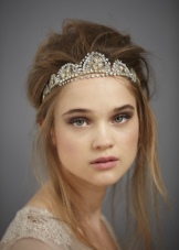 Tiara - headband is very popular among fashionable brides. She wears on the head like a hoop. The similar model is equipped with additional clamps. They are miniature scallops. The rim can be worn on the head or fastened to the hairstyle using a mesh.