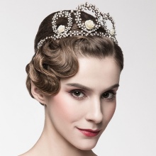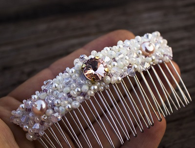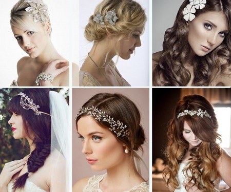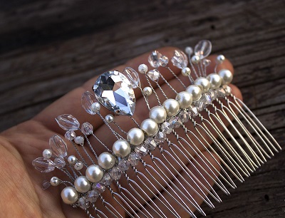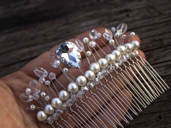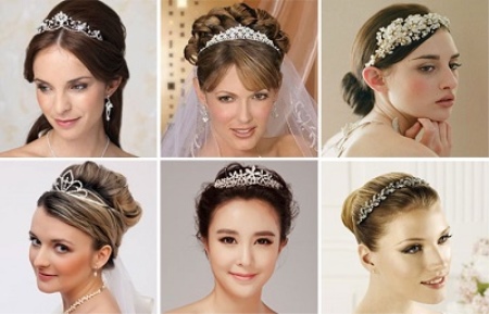 A tiara comb is differently called a mini-crown. She looks festive and successfully emphasizes the tenderness of the female image. Such a product is fixed on the head with the help of small teeth. This accessory will look great on a high hairstyle and with a veil.