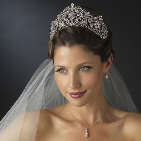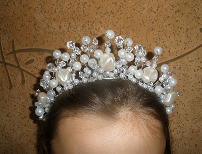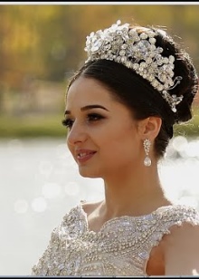 Want to look fabulous at a wedding? Then the silver tiara adorned with diamonds is perfect for you. This accessory can create a magical royal look. With this addition will be perfectly combined earrings, bracelets and pendants from similar materials. It is recommended to select accessories with similar elements.