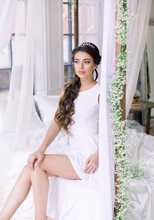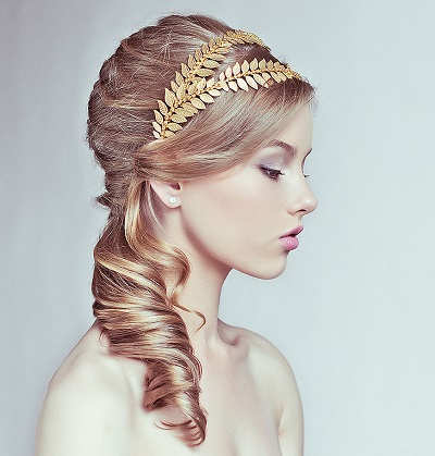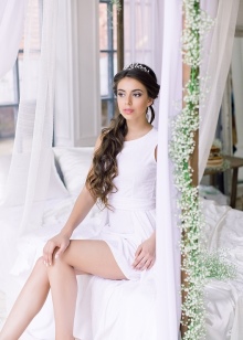 - Hairstyle in the Greek style will be in harmony with the crown, which is able to give the image of romance and airiness;