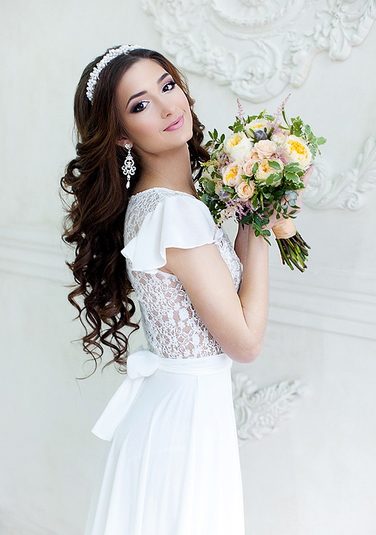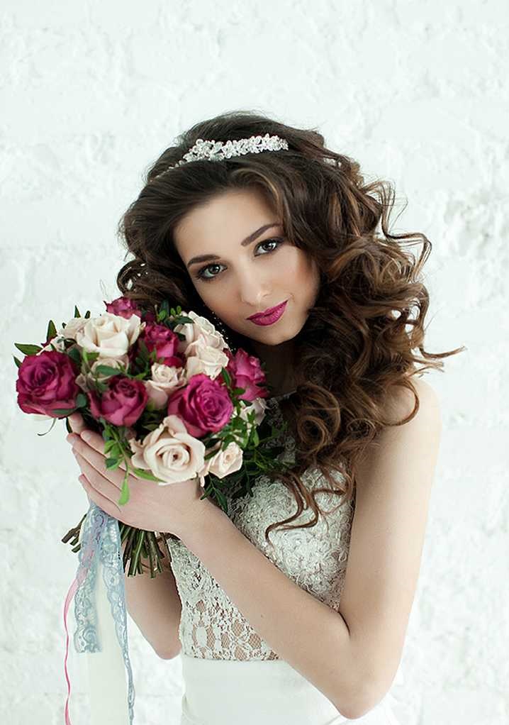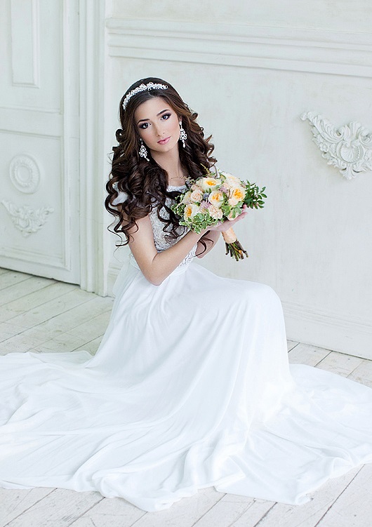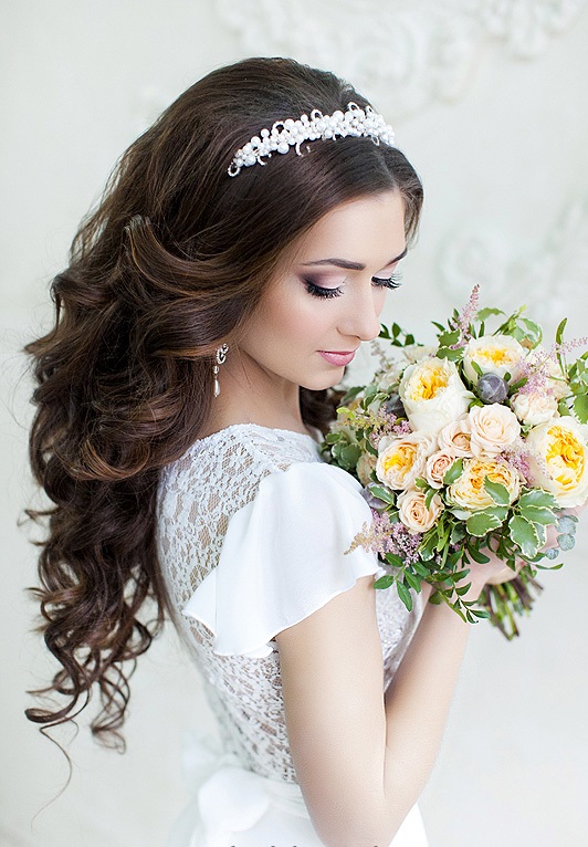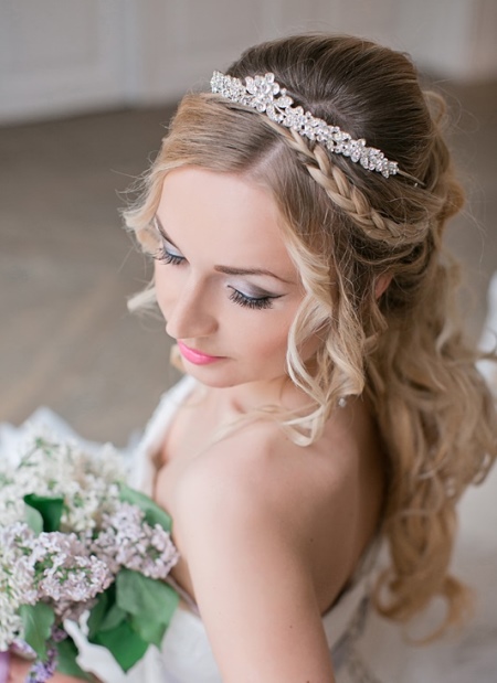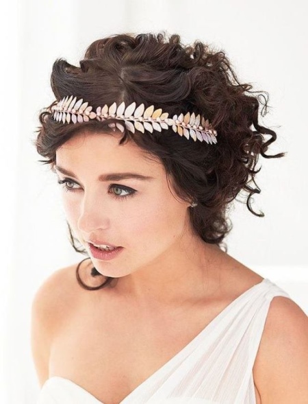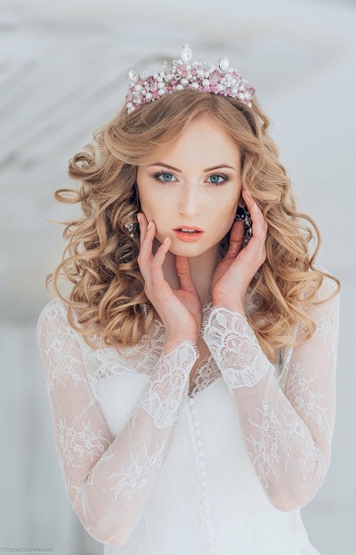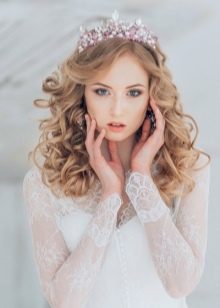 - Brides with curly curls should pay attention to the spectacular tiaras of small size;