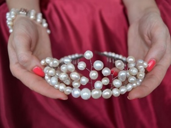 Enchanting models with pearls are wildly popular. Such decorative details look fabulous as in gold and silver frame. No less impressive, they will look with cheaper metal. The luxury accessory will emphasize the tenderness and natural charm of the ladies.