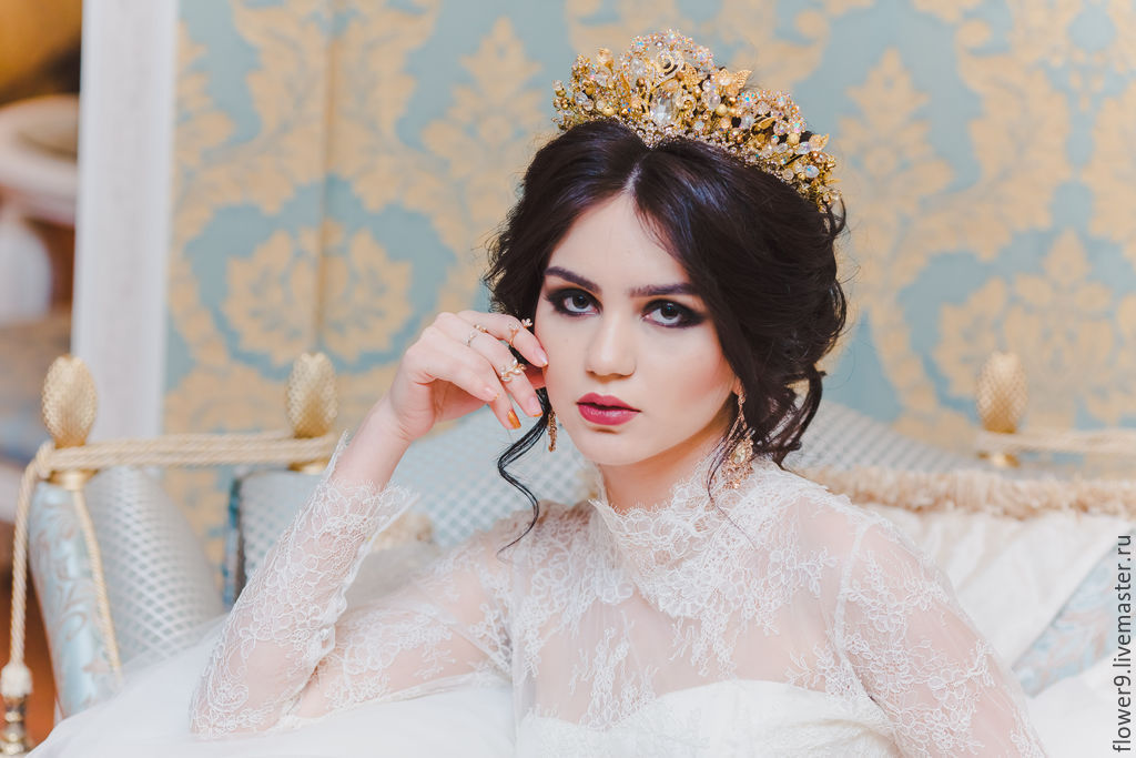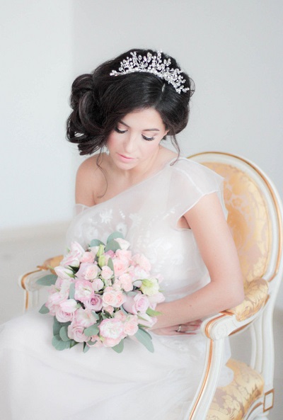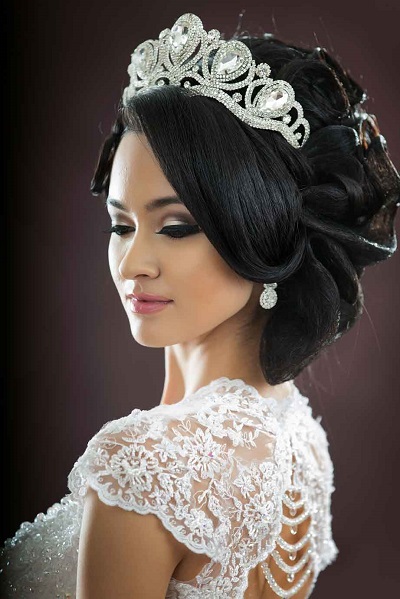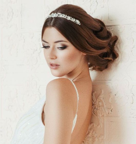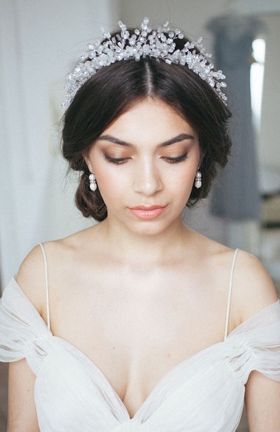 Tiara - the crown is the perfect choice for a confident bride who wants to look like a king on her party. It will make the image more vivid and regal. The lady will look especially impressive if she adds shining rhinestones or pearls to her beautiful hair.