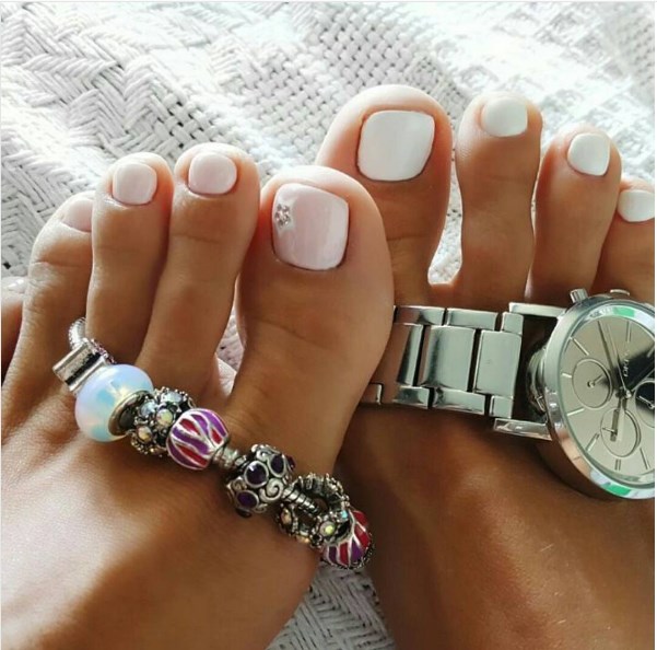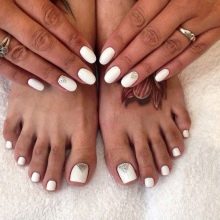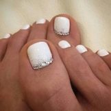 As you can see, the design of nails - an important part of a fashionable image. You definitely will not lose if you decide to decorate your toenails with white varnish. A special highlight will be the decoration of stones, crystals or rhinestones.
