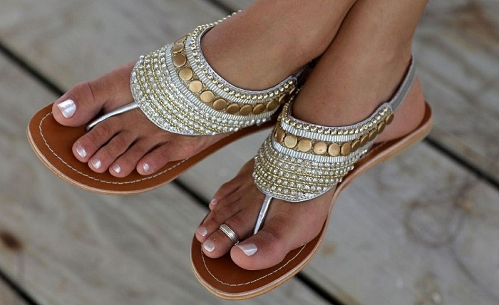 Pearl and bright pedicure version is suitable for real fashionistas who are ready to challenge everyday foundations.