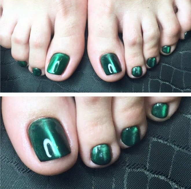 The luxury and wealth of gold and silver speak for themselves. It is important not to overdo it with their use, otherwise together with an elegant pedicure you will get a Christmas-tree decoration. Use them as accents.