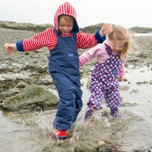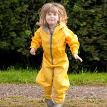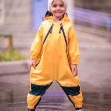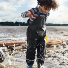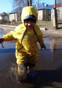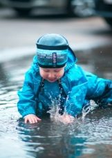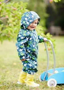 Manufacturers sew overalls with rain protection on children of any age - from the very birth. It is important that the rain does not constrain the movements of the child and do not need to remove other parts of clothing to wear it. In the warm summer rain is a great option - it is not hot in a raincoat, but not a single drop will fall under it.
