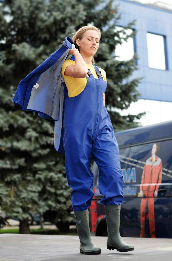 In some situations, semi-overalls will be more convenient - pants on the straps, the trouser legs of which are drawn in from the bottom and do not allow water to enter. Such models are good if it doesn't rain, but it's wet outside, and you have to walk in the woods or the park, work in the garden or another important matter.