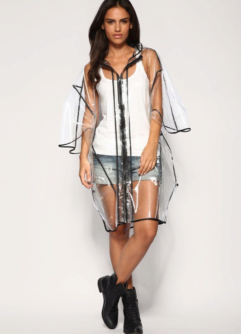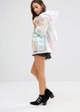 A transparent raincoat on a wide black zipper does not appear as a utilitarian thing for protection from the weather, but as a striking stroke that completes the creation of a trendy casual image that is equally relevant both on European streets and on the catwalks of the best fashion houses.