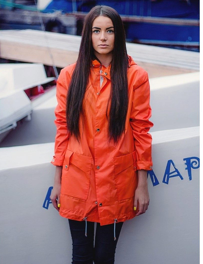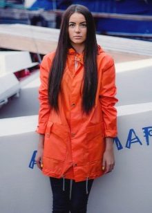 If the weather forecast promises rain and gusty winds, you should also wear a warm cozy scarf and cute rubber boots of any color to the rain coat. Gloomy autumn and early spring do not have to be gloomy and monotonous!