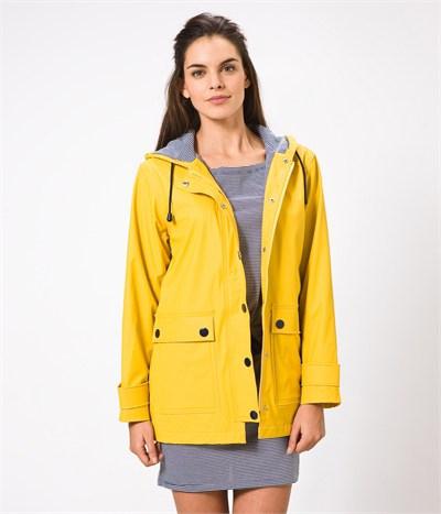 The classic rain coat has a bright yellow color. Initially it was an element of working clothes of fishermen. It was in the sea that such a noticeable color solution became a guarantee of survival if a person fell into the water - the yellow jacket made it possible to quickly see who was left behind and save him.
