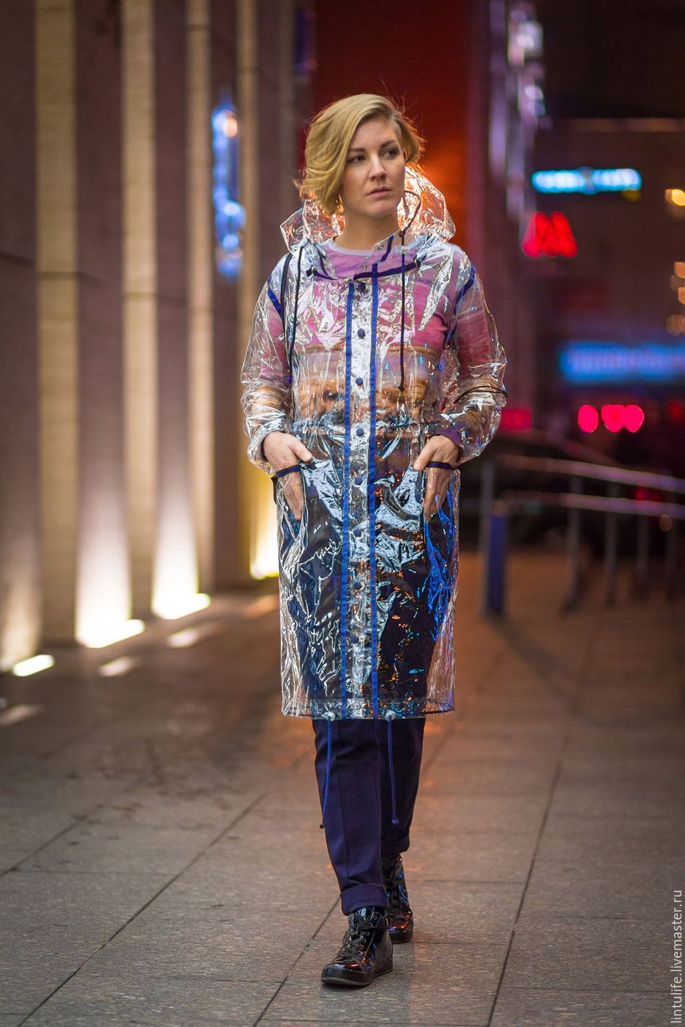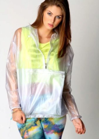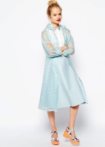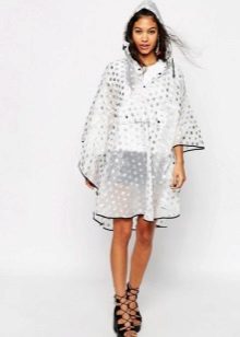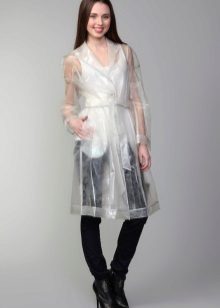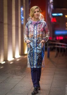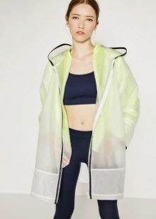 This model accurately reliably protects you from rain and will not allow wet drops to spoil your mood. A transparent elongated raincoat can be almost imperceptible, but if you want to add a zest to the image, choose a model with a color trim.