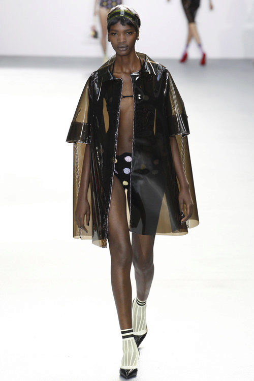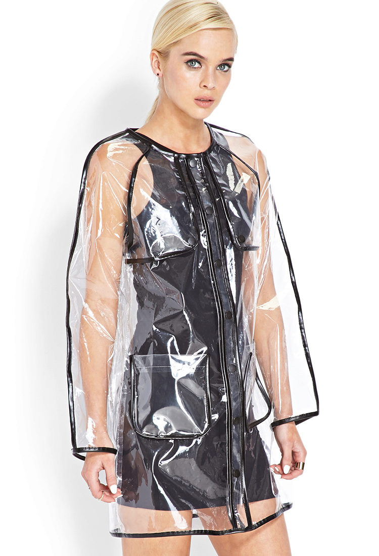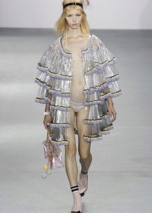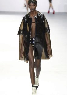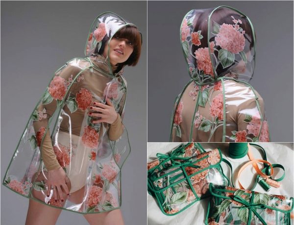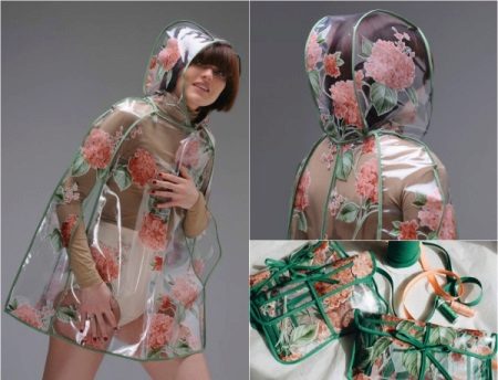 The oversize-sized raincoats, voluminous PVC and vinyl raincoats, models with ruffles and voluminous hoods are in fashion.