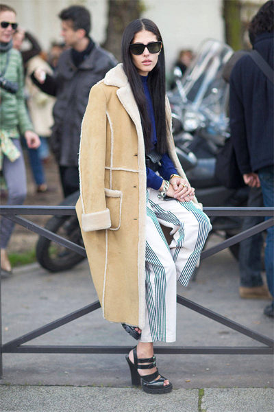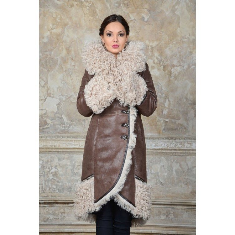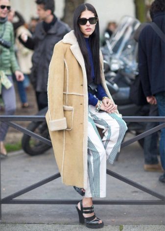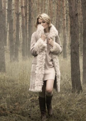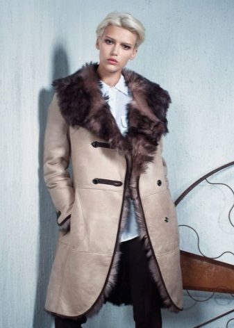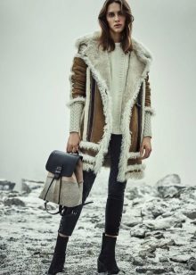 Color solutions also remain mostly minimalist. But it all depends on the style in which the sheepskin coat is sustained. Classic colors are brown, blue, black, beige. But the clear lines of the trench supports pastel colors of cream, gray, cream shades.