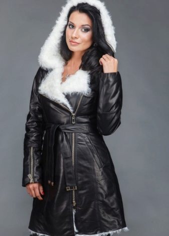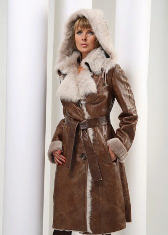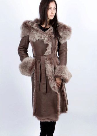 Sheepskin coats are decorated not only with a collar or cuffs, but also with a hem or hood. For decoration, the choice of fur usually stops on mink, Arctic fox, fox or rabbit. No less beautiful looks edging of sheepskin, light shades.