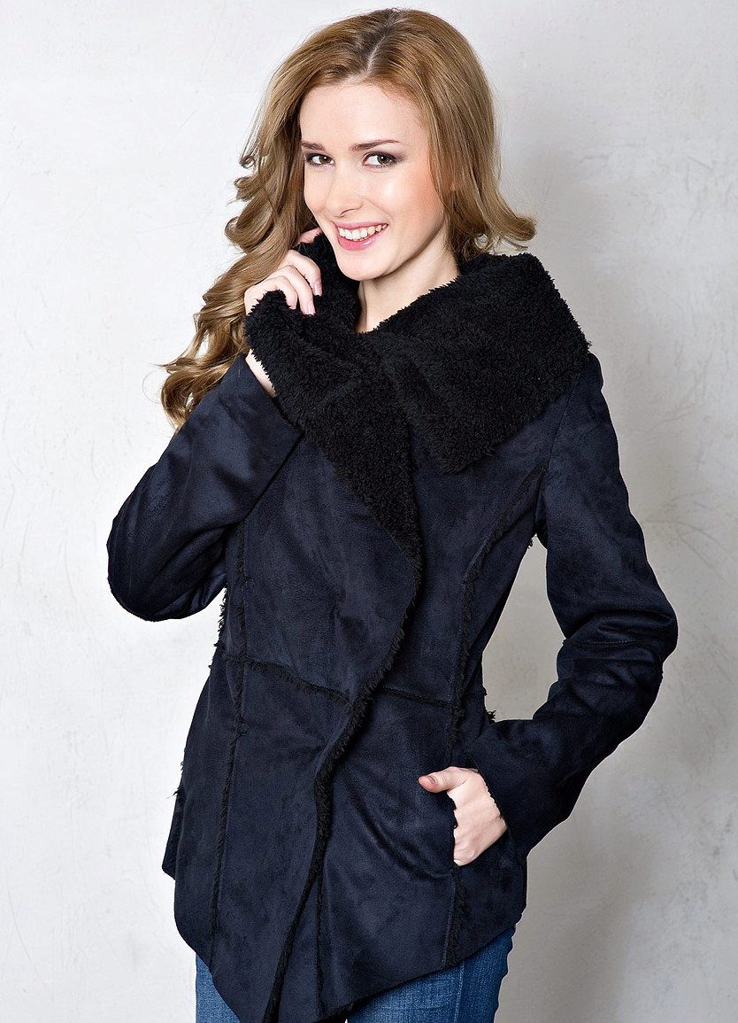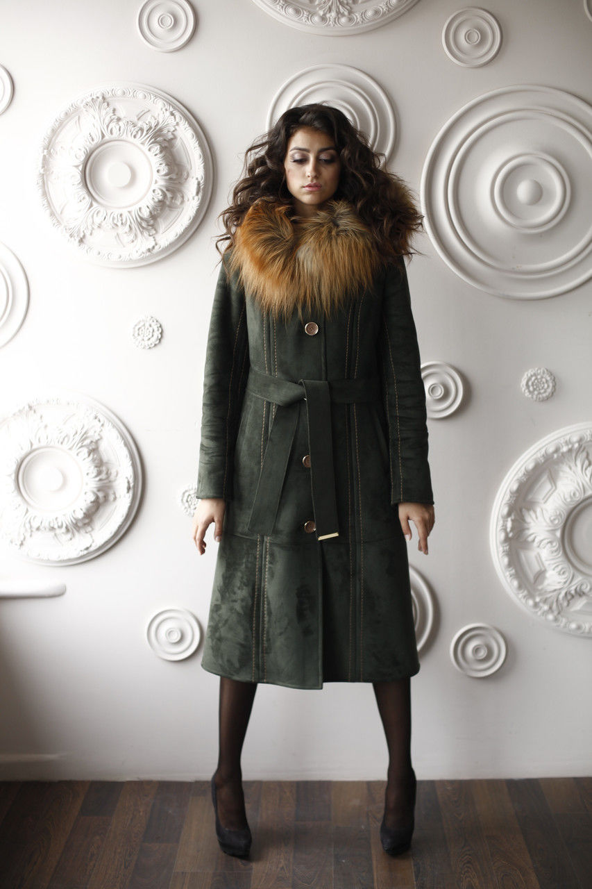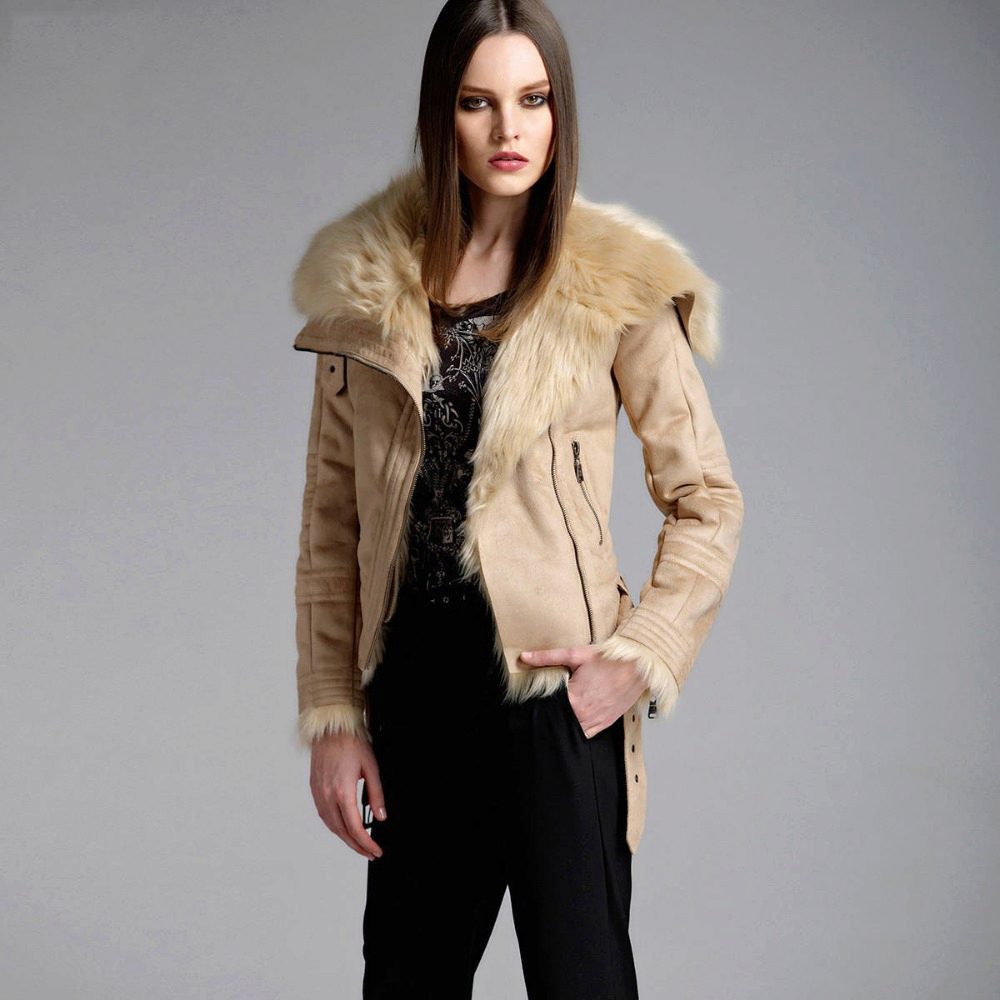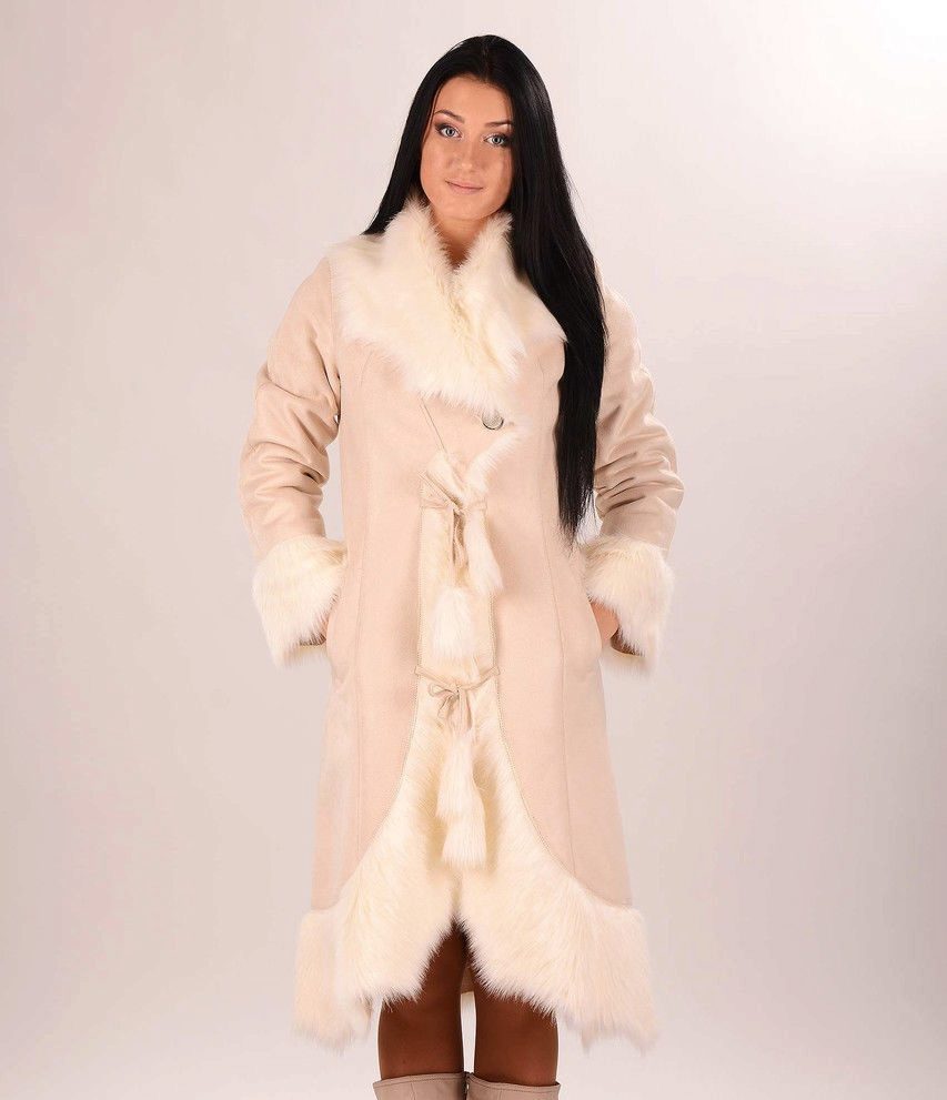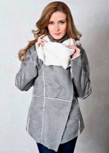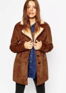 - artificial suede - the second most popular material for the manufacture of quality sheepskin coats. It has a pleasant softness when stroking. There are both raw sheepskin coats, and coated with "gloss" for water-repellent effect.
