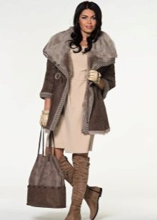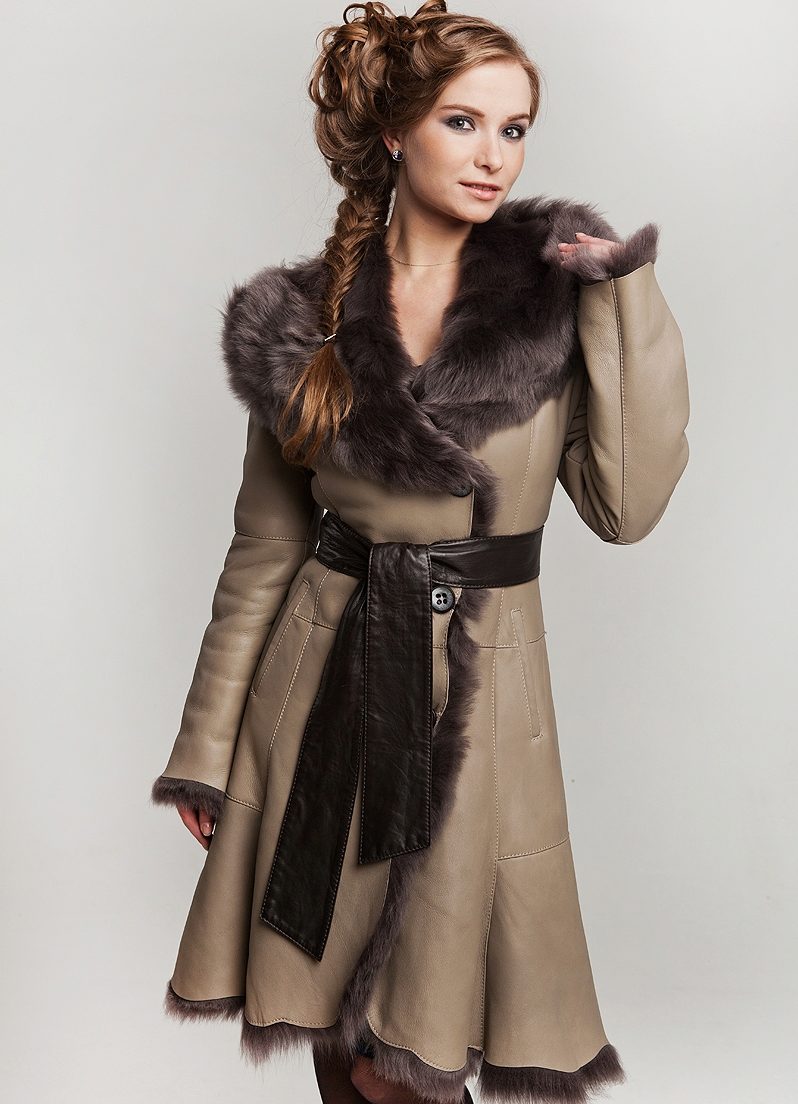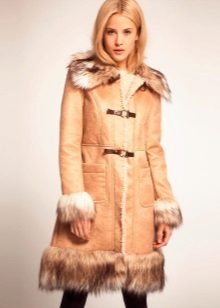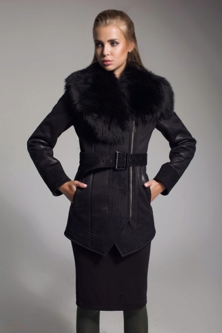 - with fur - recently sheepskin coats decorated with silver fox and mink are popular; they add to the product status and attractiveness; Fur can be both natural (which will increase the cost of clothing) and artificial;