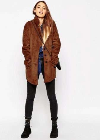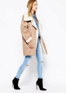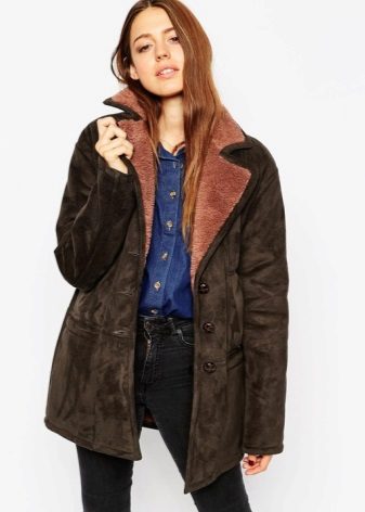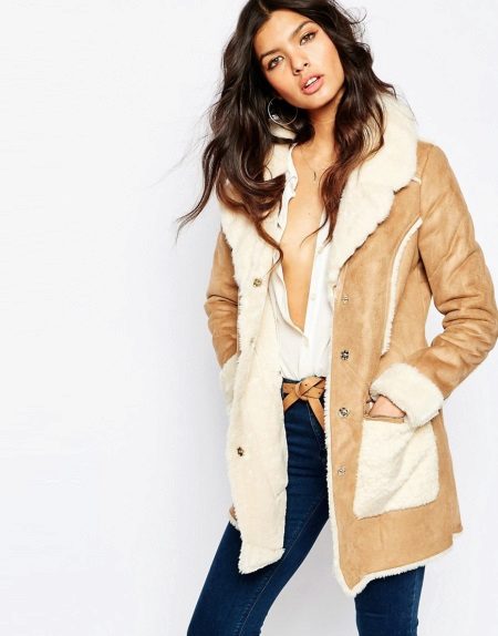 - a sheepskin coat jacket - warm outerwear for fall or winter. Option length to the hips or slightly below. As a rule, jackets have a fitted cut, faux fur trim. Do not constrain movements of the hostess and are combined with a variety of sets of clothes. Such a product emphasizes a slim figure;